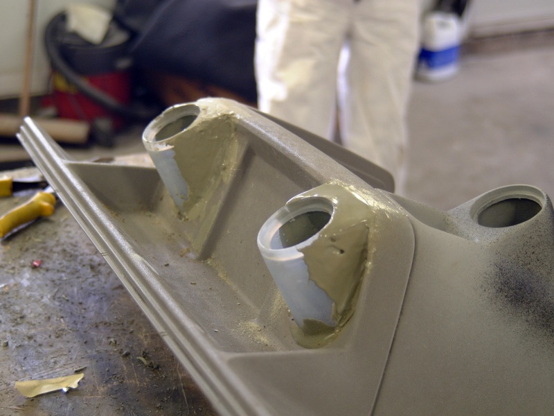 Photos du moulage de la console centrale et de la fabrication d'un pont d'éclairage